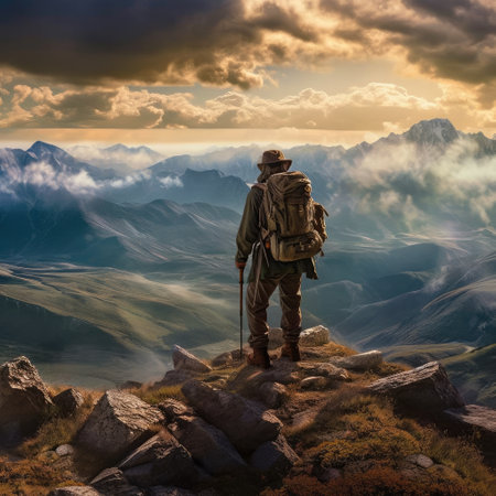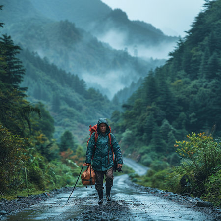 This captivating image showcases an adventurous journey as a hiking and traveling enthusiast explores a scenic trail. The composition captures the spirit of wanderlust and discovery, as the guy immerses himself in the beauty of nature. With a backpack on his back, he embarks on a trail that promises exciting experiences and breathtaking vistas. The image reflects the joy of outdoor exploration, showcasing the harmony between the traveler and the natural environment. Join this intrepid adventurer on his quest for new horizons and unforgettable moments