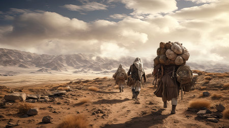 Post-apocalyptic nomads traversing a desert