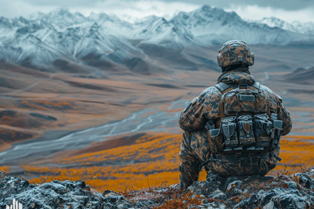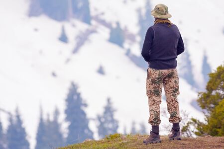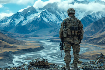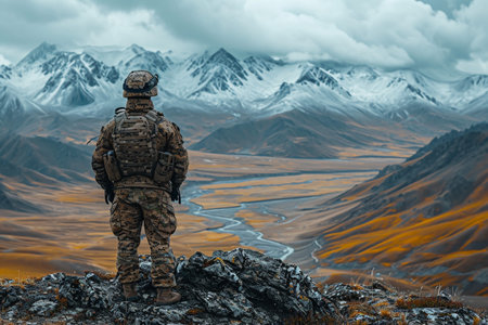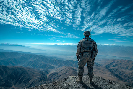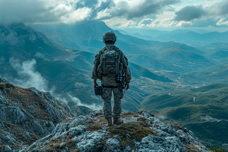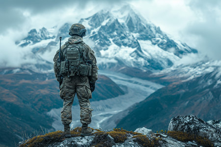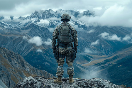 Soldier on the top of a mountain
