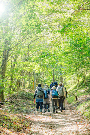People walking or trekking to the forest at the mountain