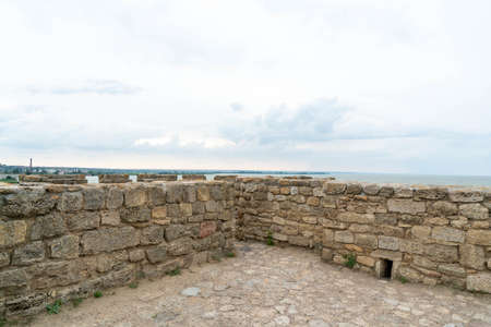 The walls of the ancient stone Akkerman fortress in Ukraine, historical monument.