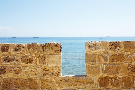 a fragment of the old Crusader fortress in the old city of Akko in Israel. view of the Fort and its walls at the entrance