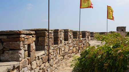 Fortifications on the surrounding wall of Golcanda Fort, Hyderabad, India Built for the Mughal Empire in medieval times on a hill overlooking the city