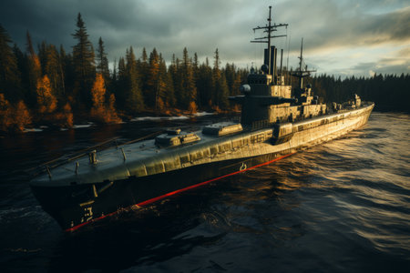 Sea battle war.The Second World War.Digital creative designer art.Abstract surreal psychedelic illustration.3d render