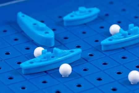Close up of strategic battleships board game with ships and pegs