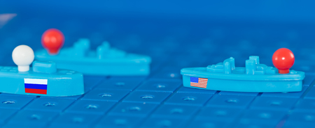 Clash of the toy battleship Board a Russian submarine and an American warship with missiles