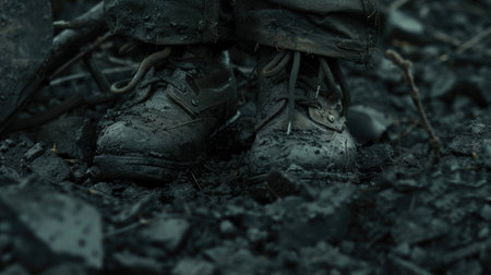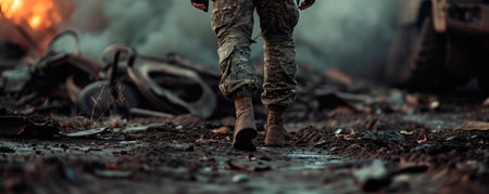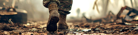 Soldier walking through mud in combat boots