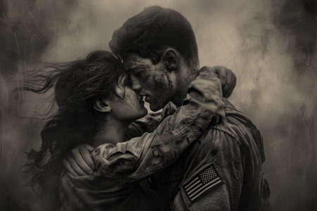 Enduring love: tender moments and unwavering devotion in the embrace of a soldier's heart.
