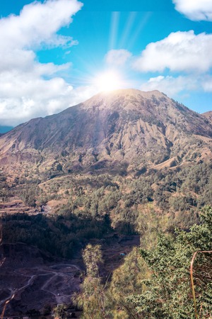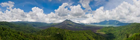 Active Indonesian volcano Batur on the tropical island of Bali. View of great volcano Batur. Beautiful landscape.