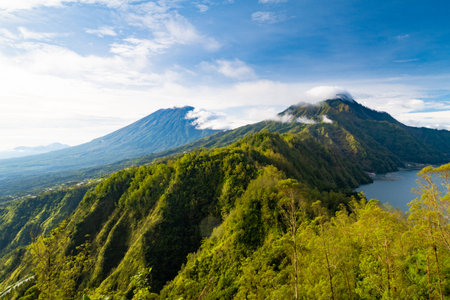 Beautifull mountain in the morning mist , Batur, Bali, Indonesia