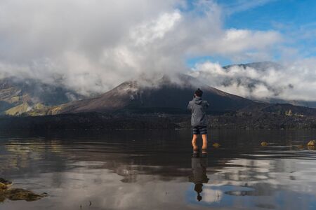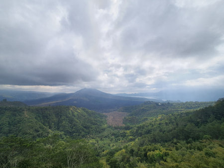 Landscape view of Batur volcano under big cloud, Bali, Indonesia