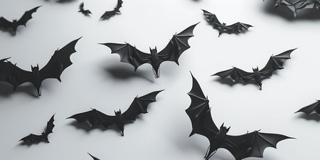 Black bats on white solid background, Happy Halloween - Ai Generated