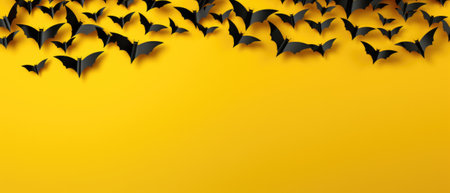 Poster with bats on yellow background with copy space, empty for text.