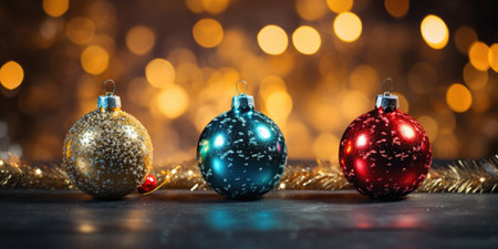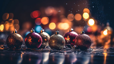 AI Generated. Christmas baubles on bokeh background Xmas holidays concept