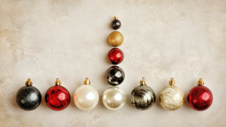 This image showcases a delightful arrangement of red, gold, and silver ornaments, perfect for adding a festive touch to holiday decor and celebrations.