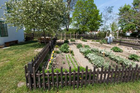 Small garden with vegetable patch and flower bed