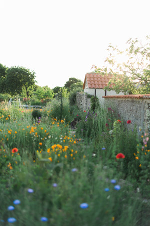 Beautiful Flower covered French Rural Garden at Sunset