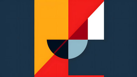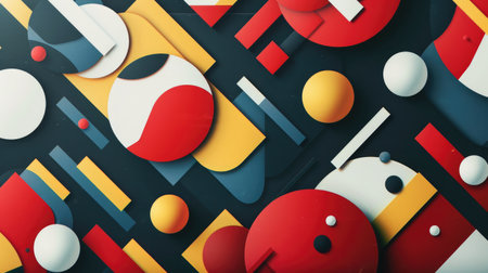 This vibrant image features a striking arrangement of geometric shapes in various colors on a bold split background, perfect for artistic themes and modern design projects.