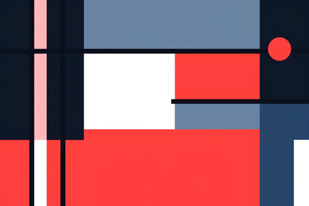 A minimalist Bauhaus-inspired background with a structured composition of primary colors, simple geometric shapes, and sharp, clean edges.