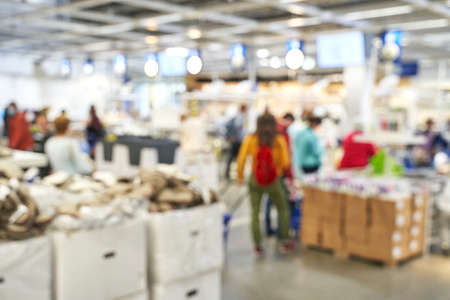 Market shop and supermarket interior with customers as blurred store background