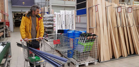 Russia, St. Petersburg 19.10,2019 A buyer with a trolley in a building goods store