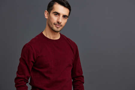 portrait man in a red sweater hand gesture posing self confidence isolated background