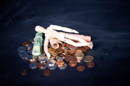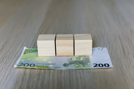 Wooden cubes blocks, money 200 Euro banknotes. Management big salary career conception