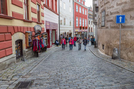 CESKY KRUMLOV, CZECH REPUBLIC.- OCTOBER, 2019: Beautiful old streets of Cesky Krumlov town, popular touristic destination