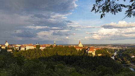 Panorama of Trebic, a site in Moravia, Czech Republic, St Martin Church in Trebic, Czech Republic