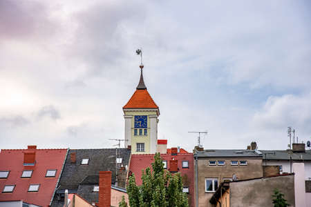 RIESA/GERMANY - July 23/2018: Photo of cityscape with house and blue sky