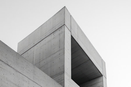 Geometric clean concrete facade with minimal design, representing brutalist and modern architectural style in urban environments.
