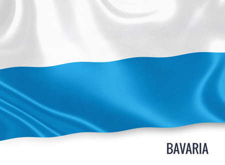 Flag of German state Bavaria waving on an isolated white background.