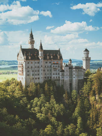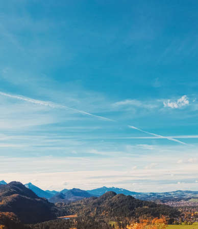 View from Neuschwanstein Castle to a valley in Bavaria, among the alpine mountains