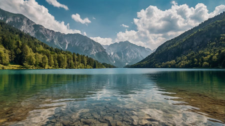 clean and transparent lake in the mountains