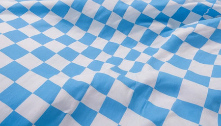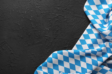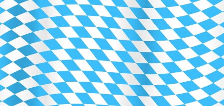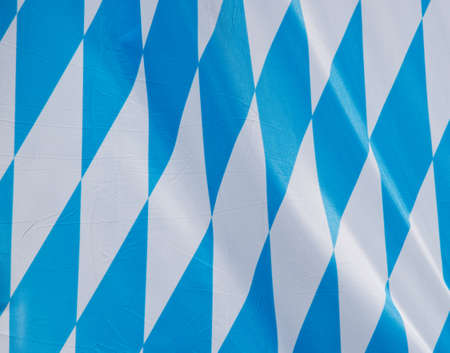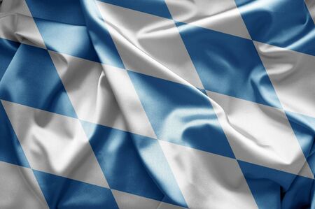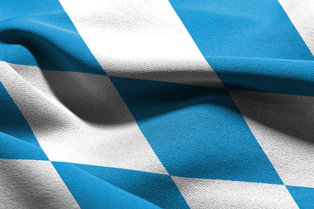 Bavarian official flag, symbol, banner, element. Oktoberfest checkered background with blue and white rhombus. Correct colors. Flag of Bavaria waving in the wind, real fabric texture. 3D illustration