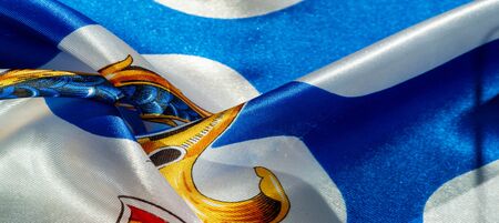 3D illustration flag of Bavaria is a region of Germany. Waving on the wind flag textile background