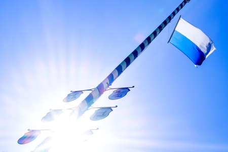 Bavaria, Germany - May 26: typical old bavarian maypole with antique paintings near Munich on May 26, 2020