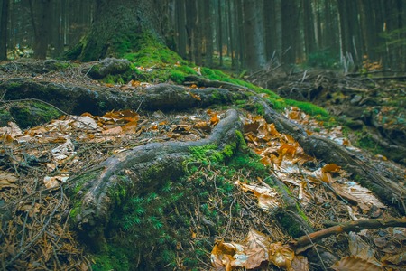 Autumnal scenic mountain forest in Carpathians, Ukraine