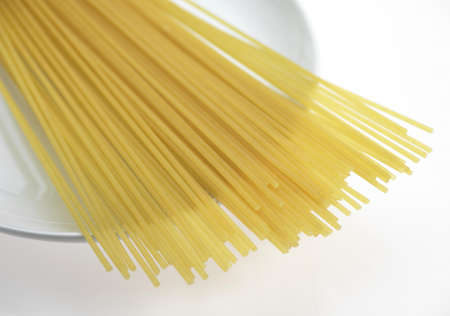 Italian pasta noodles. Flat and thin pasta. Yellow linguini pasta