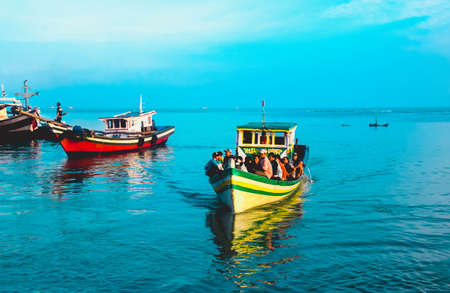 Pandeglang, Indonesia - July 24, 2019: The busyness of the fishermen preparing to move the results of fishing in the traditional port of Panimbang Village, Pandeglang, Banten Province, Indonesia