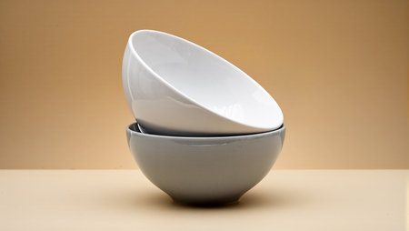 White bowl on gray bowl against a soft backdrop, highlighting simplicity.