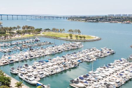 Many yachts in a marina in San Diego