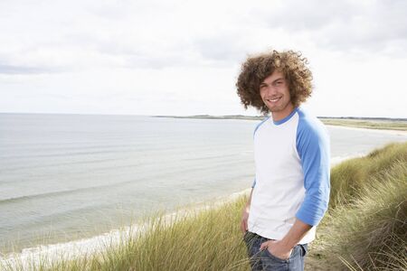 Portrait of smiling young man standing on the beach on a sunny day