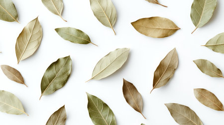 Bay leaf pattern on side position provides copy space for text. background concept isolated white