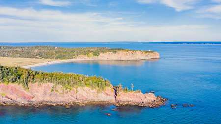 Aerial view of Lighthouse at Fundy's Cape Enrage Fundy Biosphere Reserve in Canada