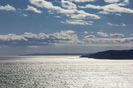 Sea water shining in a calm cloudy day