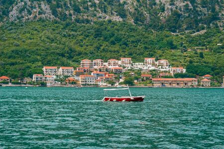 Boat in the Bay of Kotor. Montenegro, the water of the Adriatic Sea. Boats, yachts, liners.
