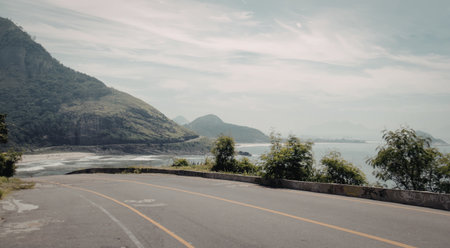 The beach road with mountains, sea, beautiful sky.