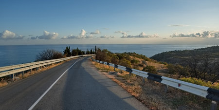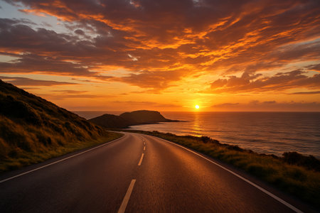 Serene coastal road at sunset. Dramatic view.