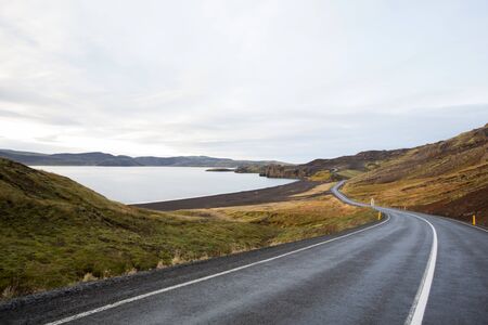 Curvy emptry road near the sea in Iceland